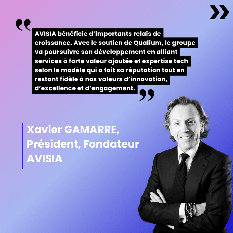 Nous sommes ainsi heureux d’annoncer l’entrée de Qualium Investissement au capital d’AVISIA, aux côtés de notre équipe dirigeante, pour soutenir une nouvelle phase de croissance ambitieuse.