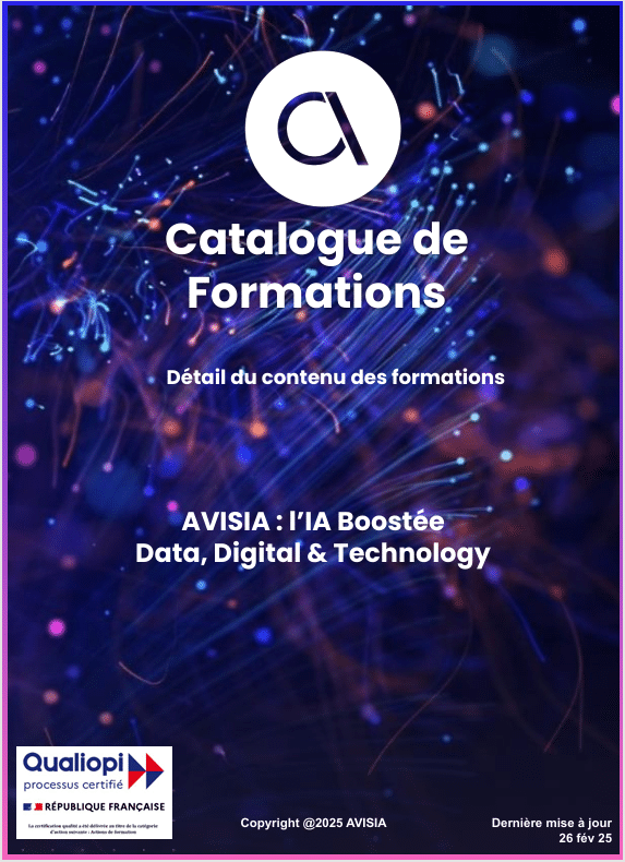 À travers AVISIA Training, nous nous engageons à vous proposer : une expertise qui répond aux besoins clients, une offre adaptée aux problématiques terrain, des formules flexibles, des formateurs certifiés et passionnés par la Data.