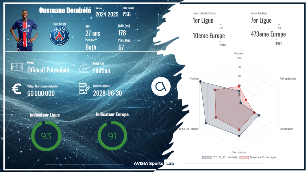 Rapport issu du AVISIA PLAYER INDEX - Ousmane Dembélé - 2024/2025 - Mai 2025Rapport issu du AVISIA PLAYER INDEX – Ousmane Dembélé – 2024/2025 – Mai 2025