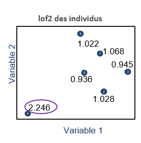 Le facteur local d’anomalie ( » Local Outlier Factor « ), est une technique développée en 2000 et dont l’idée principale est de comparer la densité locale d’une observation avec celle de ses voisins les plus proches. Si elle est inférieure à celle de ses voisins, alors l’individu se retrouve dans une région peu dense et sera de ce fait plus susceptible d’être une anomalie. Une valeur de score d’anomalie, appelée la » valeur de Local Outlier Factor » permet de définir ce critère de densité. Ce score est effectivement calculé en opposant la valeur de densité de l’individu avec la densité de ses plus proches voisins.